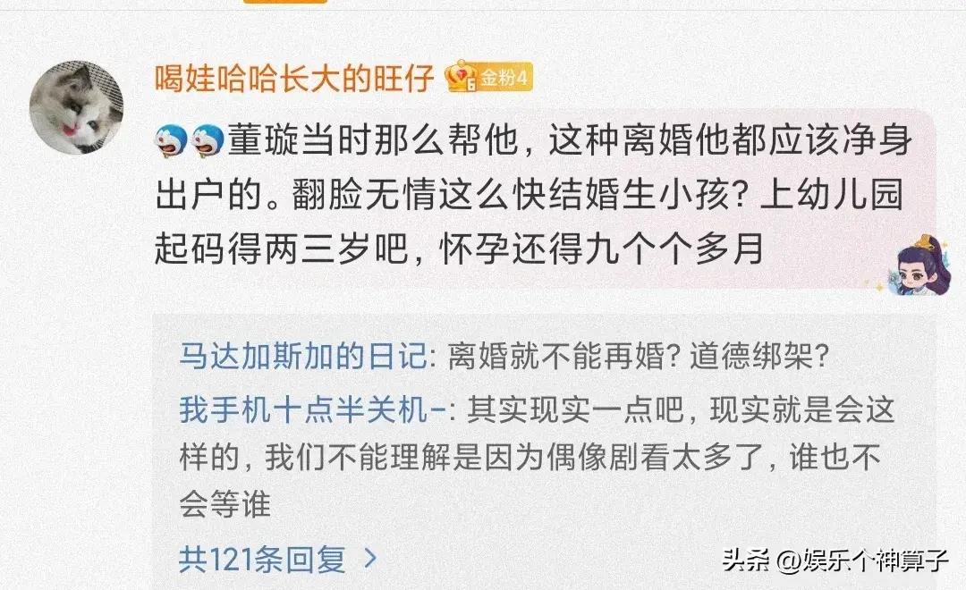 因此,看到高雲翔再婚的消息,一些網友覺得,董璇當初那麼幫他,翻臉無情,這麼快就娶妻生女,效率還真快,未免有些忘恩負義。
