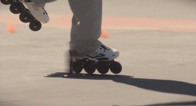 剛出場,工裝褲,鴨舌帽,滑着輪滑。
