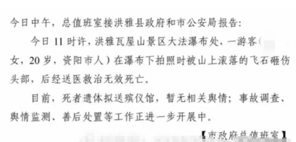 痛心!20歲女孩被瓦屋山落石砸死,家屬崩潰,身份曝光,景區回應