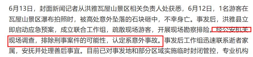 對於此,當地警方已經調查清楚了,排除了刑事案件的可能性,認定系意外事故。