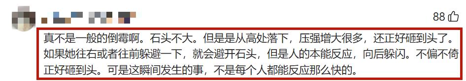 有網友說被砸女孩運氣太差了,明明是她第一個發現落石,結果丟掉性命的卻是她。
