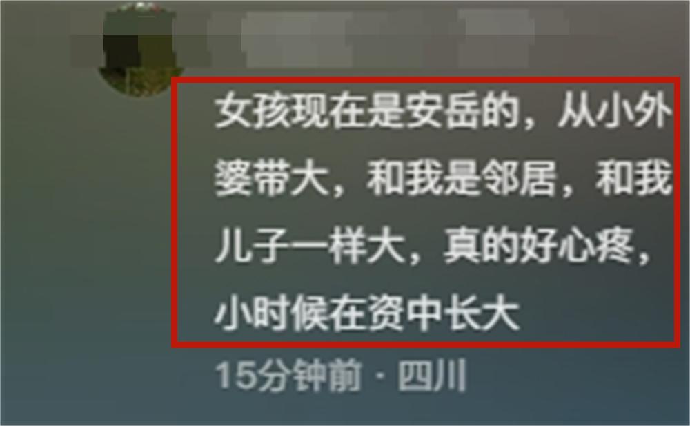 該網友還說該女孩是她的鄰居,小時候在資中長大,現在生活在安嶽,從小由外婆帶大。