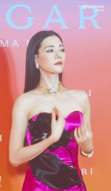 同樣異域感滿滿的娜然,選擇了一條玫紅拼黑色禮服,襯得她的皮膚白裏透紅,配着天價項鍊,站在穿着黑白灰的人羣裏立刻脫穎而出。