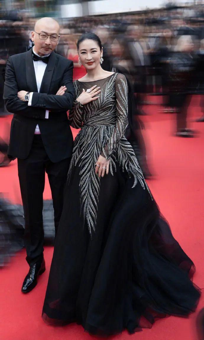 之前在戛納的紅毯造型就相當精彩,和190+的管虎成爲今年戛納最搶眼的夫妻檔。