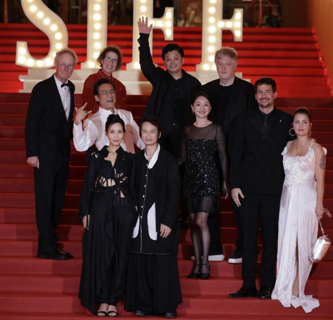 周迅一襲薄紗拼接的刺繡小黑裙,穩穩地穿出了本屆電影節評委的範兒。