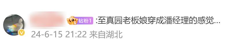有網友銳評:至真園老闆娘穿成潘經理的感覺。