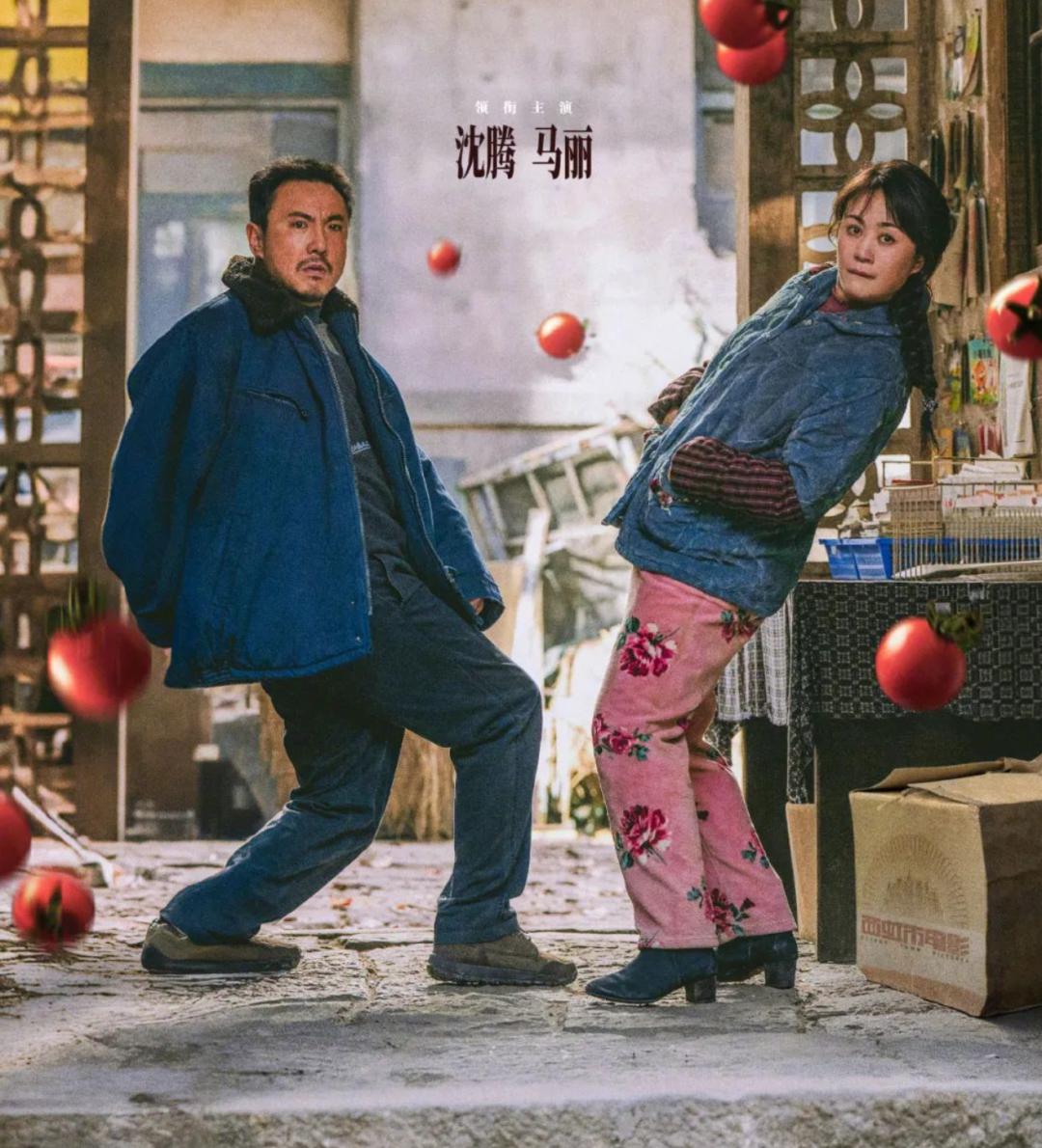 從定檔海報來看,喜劇氛圍就很濃厚,兩人都是大棉襖裹着二棉褲,默契扭頭回眸。