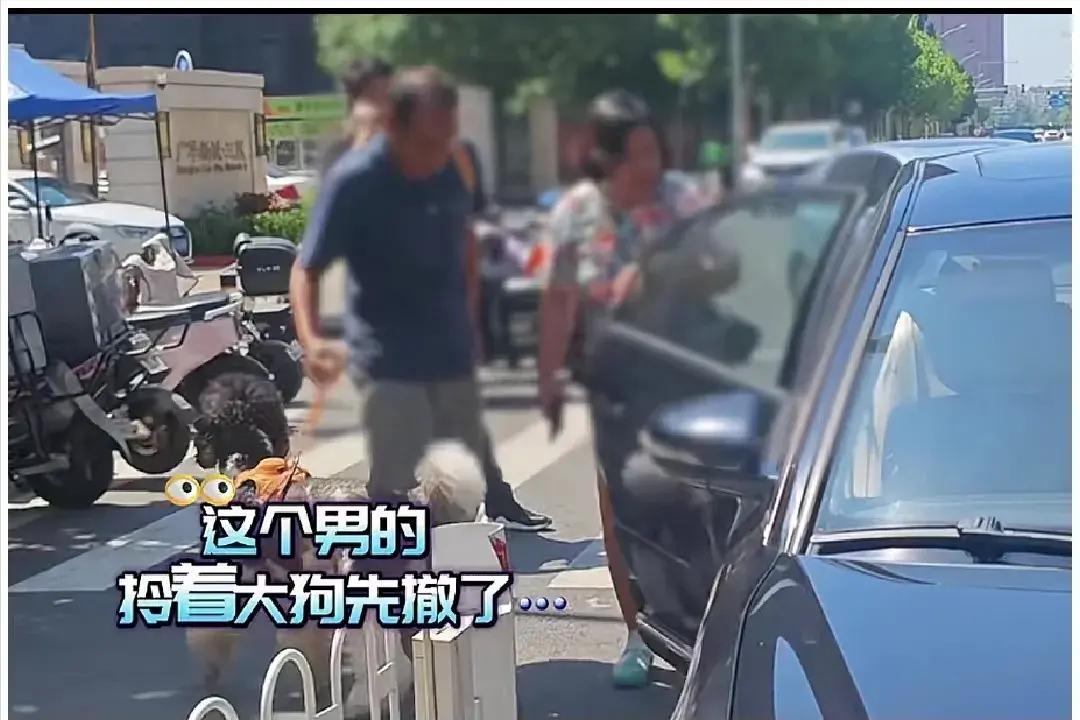 女車主正準備反脣相譏,不過就在這時,她突然想起了什麼,於是她讓同行的男子帶着狗跟自己下了車。