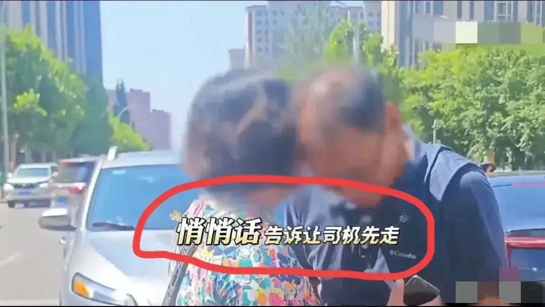 下車之後,她向男子耳語了一番,男子聽後點點頭,然後便牽着狗離開了。