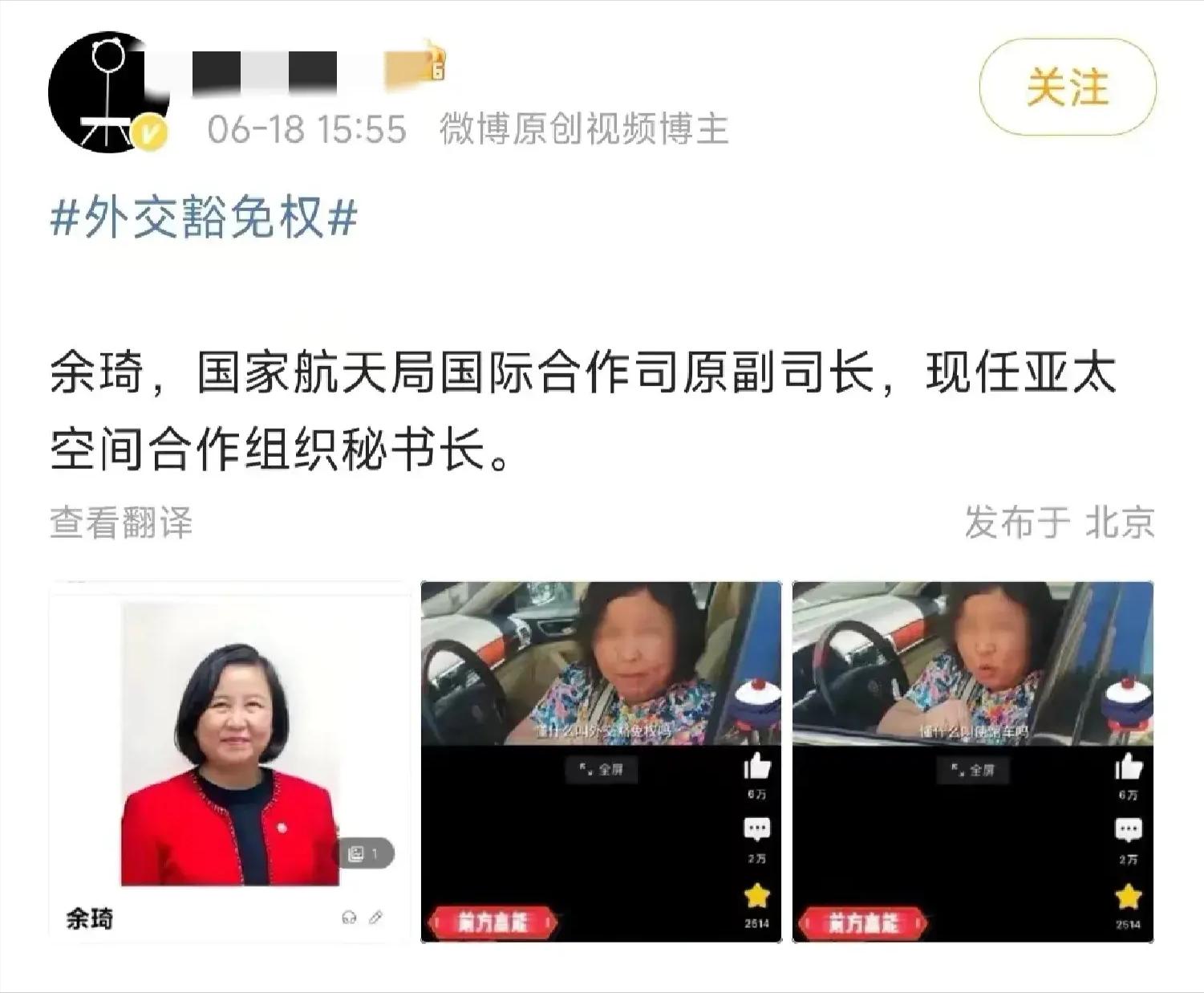原來大媽還真是個大人物,根據使館車牌照和大媽的長相,大家發現她極有可能是亞太空間合作組織的祕書長餘琦。