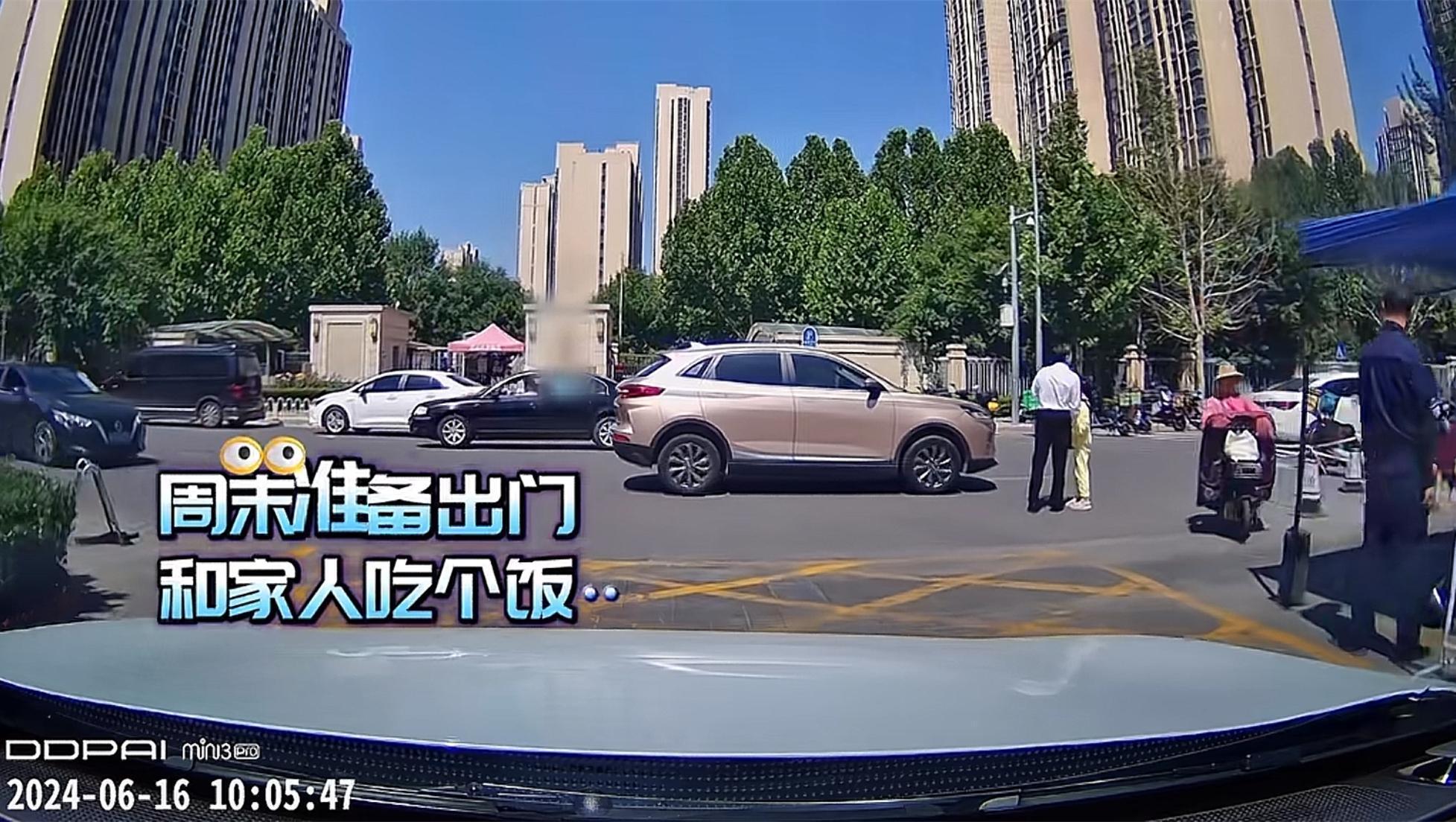 司機前腳剛走,大媽後腳就打開車門坐在了駕駛位,直到這個時候,她才發現吉先生的妻子正在錄視頻。