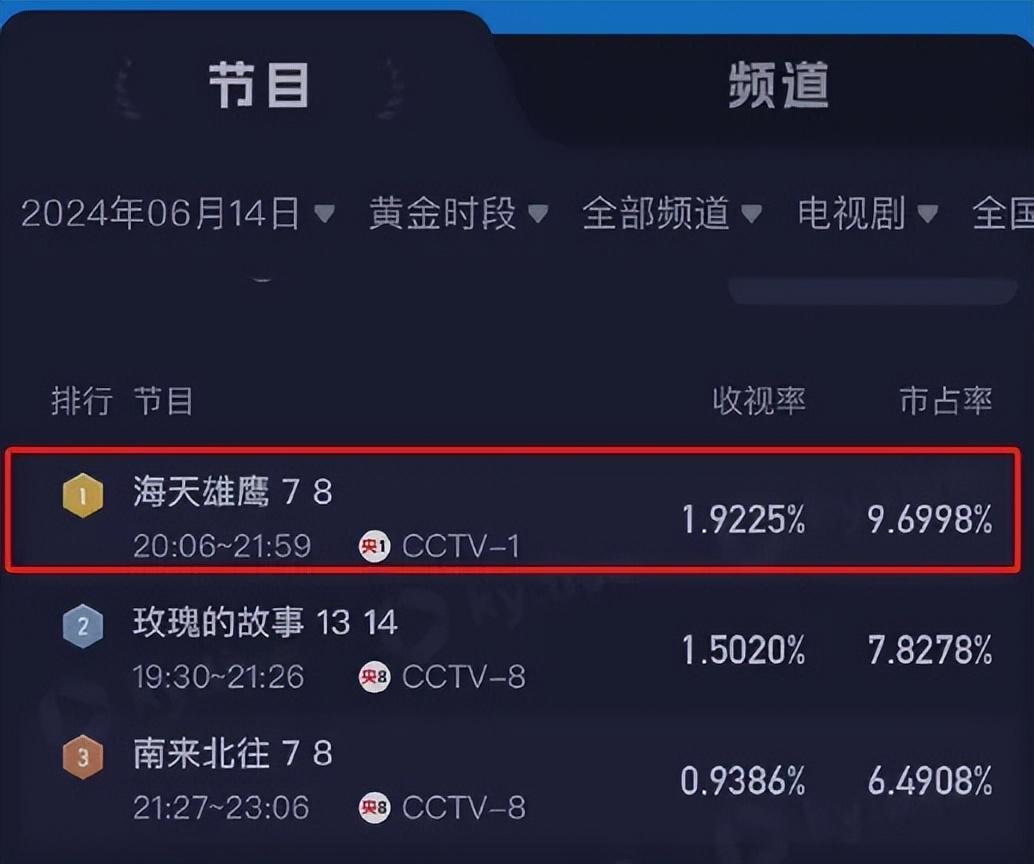 該劇黃金時段收視率力壓《玫瑰的故事》。