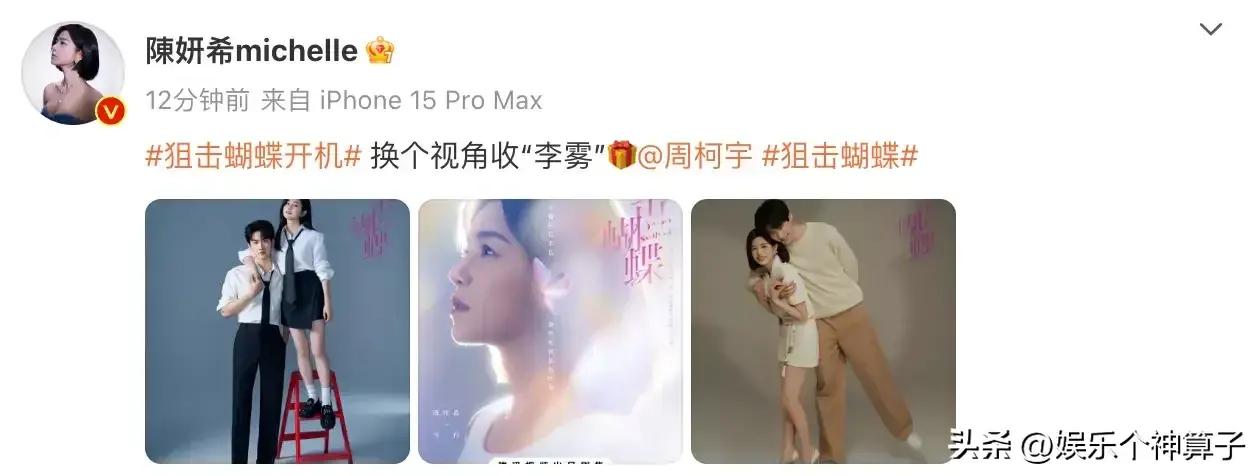 6月21日,新劇《阻擊蝴蝶》舉行開機儀式,網上曬出一組現場照片,作爲主演之一的陳妍希以及衆多演員紛紛亮相,這也是陳妍希婚變傳聞後首次露面。