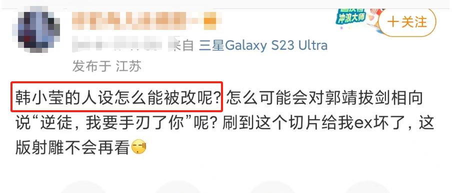 居然讓七位師傅裏最溫柔的韓小瑩對郭靖拔劍相向,還大聲吼出“逆徒”,也不知道編劇怎麼想的。