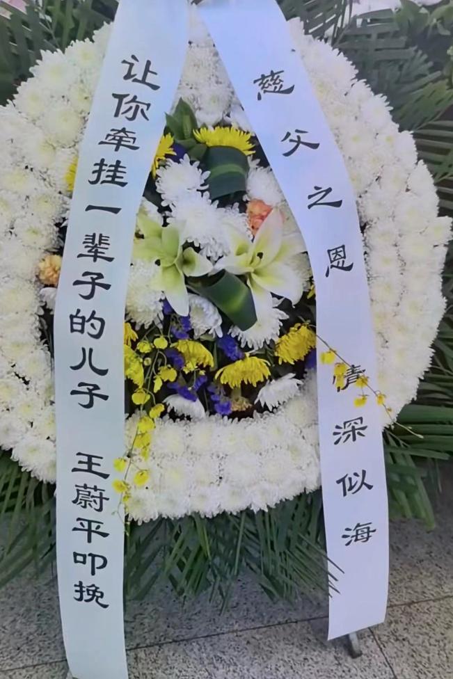 王蔚平所送輓聯上則寫着“慈父之恩,情深似海,讓你牽掛一輩子的兒子。”