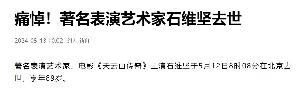 2024年5月13日,噩耗傳來,石維堅已於5月12日病逝,享年89歲。