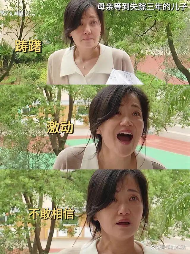 先是愣住,然後淚水迅速盈滿眼眶,之後她立刻辨認出自己的兒子,卻遲疑着未向前邁步。