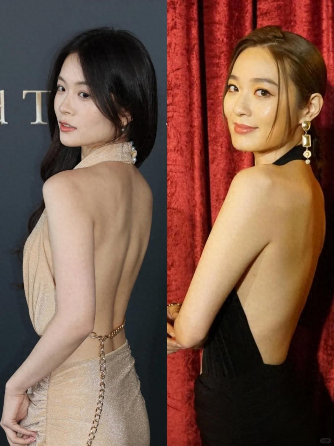 這張側面的照片,裸背誘人,儀態舒展,直接拿去和明星紅毯照放一起,也一點不違和。