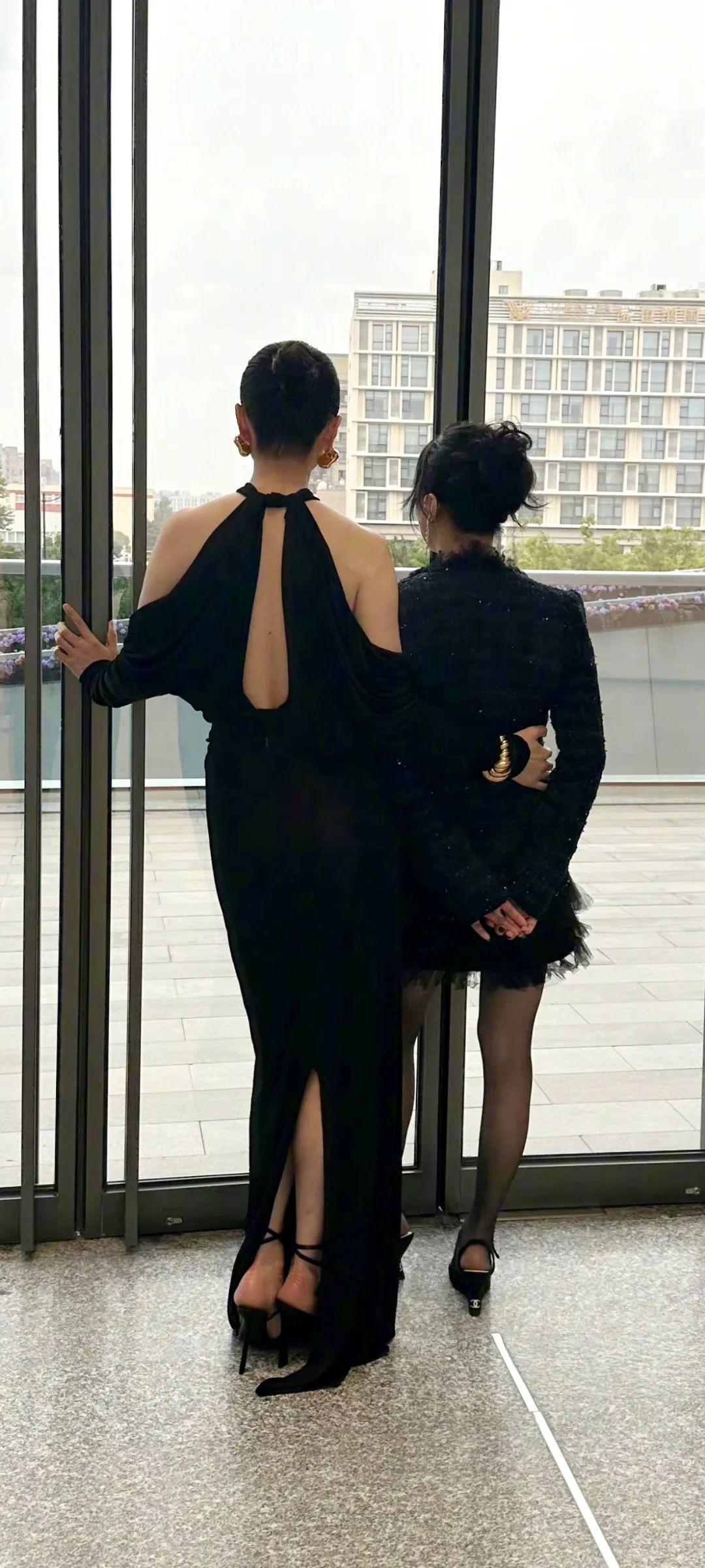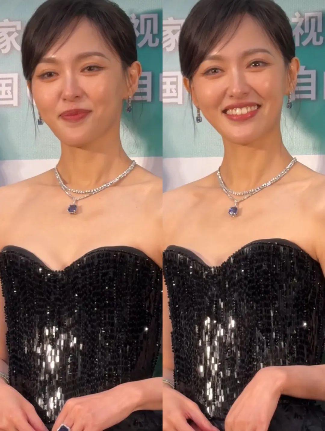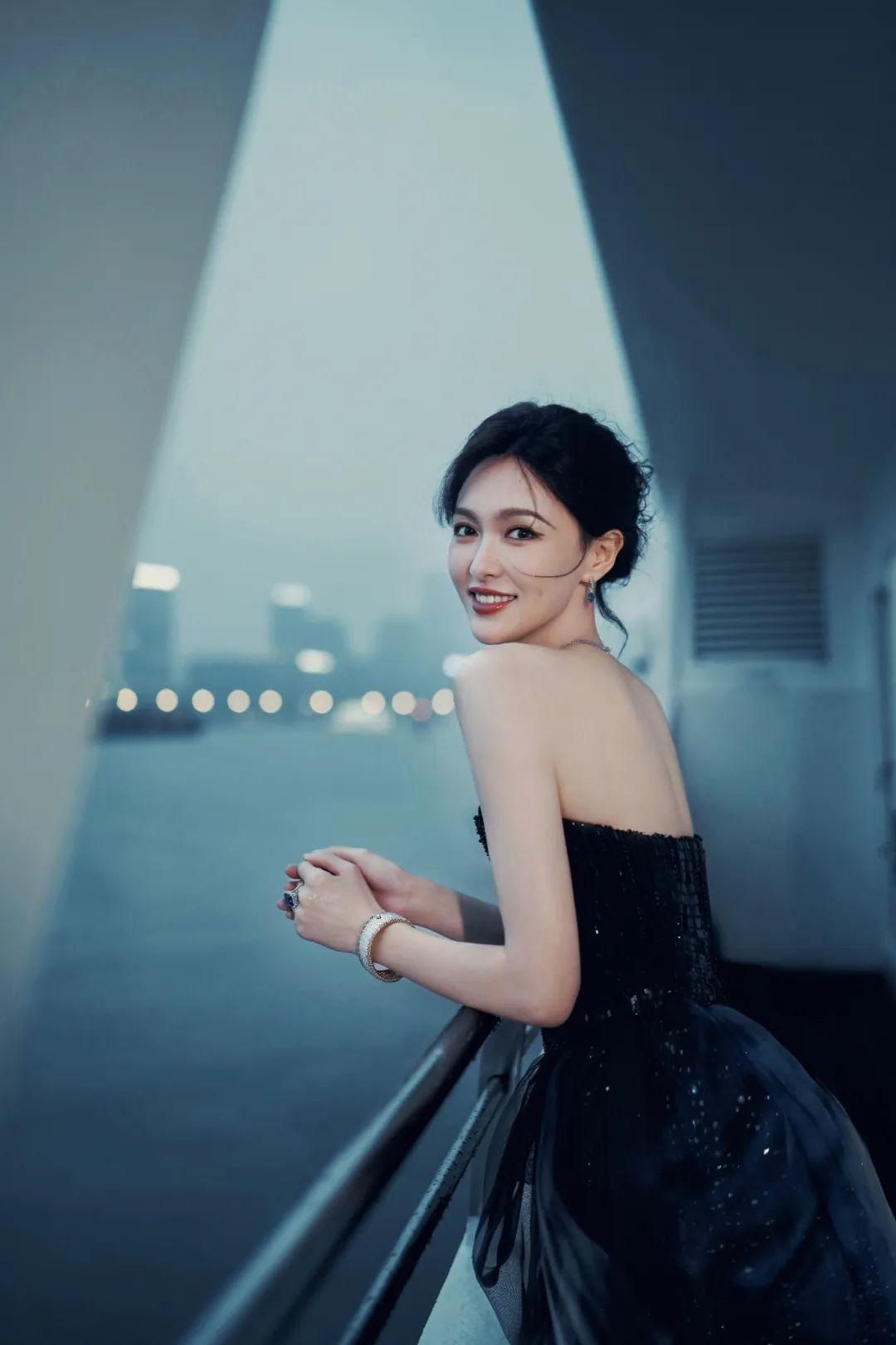 這件如銀河般耀眼的黑色抹胸長裙,既顯身材又有氣質,唐嫣纖細的腰身和白皙的美背,讓人挪不開眼。