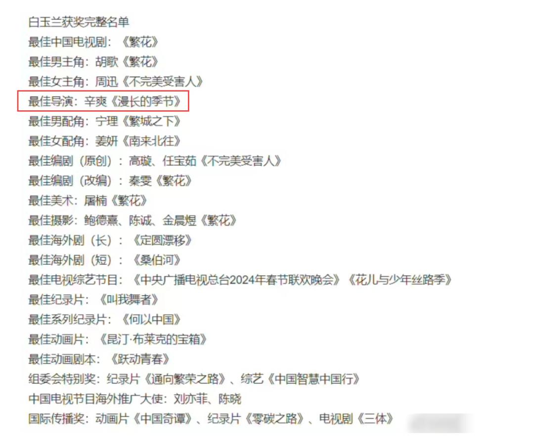 到了這屆,豆瓣評分高達9.4的《漫長的季節》也只拿到最佳導演。