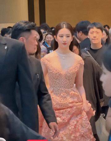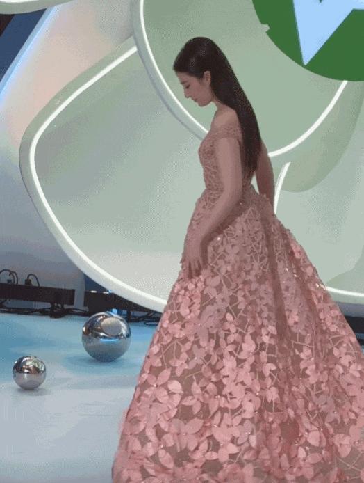 這身粉色深V禮服,仙氣中帶點小性感,從一出片就抓人眼球,禮服是仙牌Elie Saab2024春夏高定。