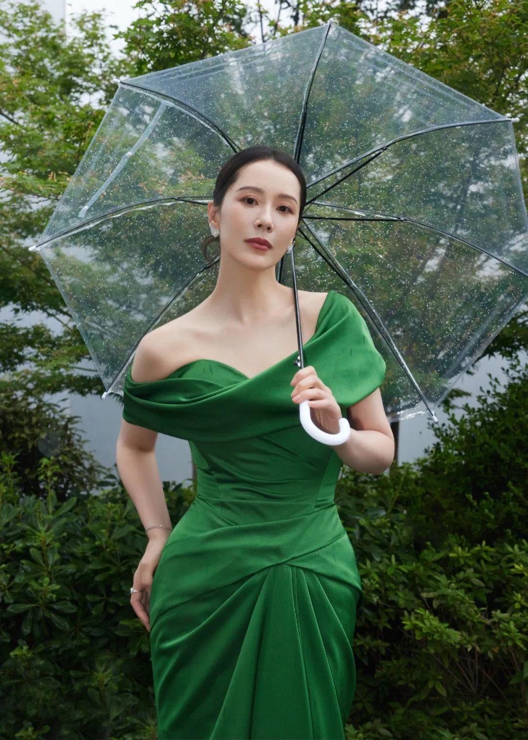 這次她選擇了綠色的禮服,整體風格還蠻清新的,哪怕在昏暗的鏡頭裏,都格外顯眼,白得發光。