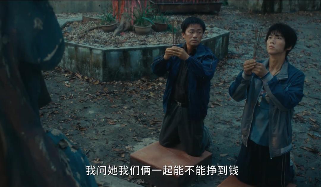 困頓之際,崔業和小弟(陳永勝 飾)跪在媽祖神像前祈求財運。