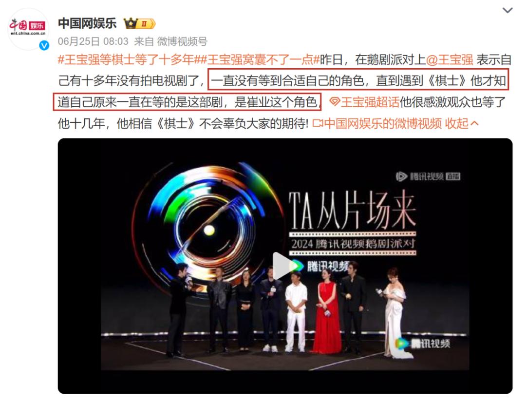 《棋士》概念海報釋出的當天,王寶強發了這麼一句話: