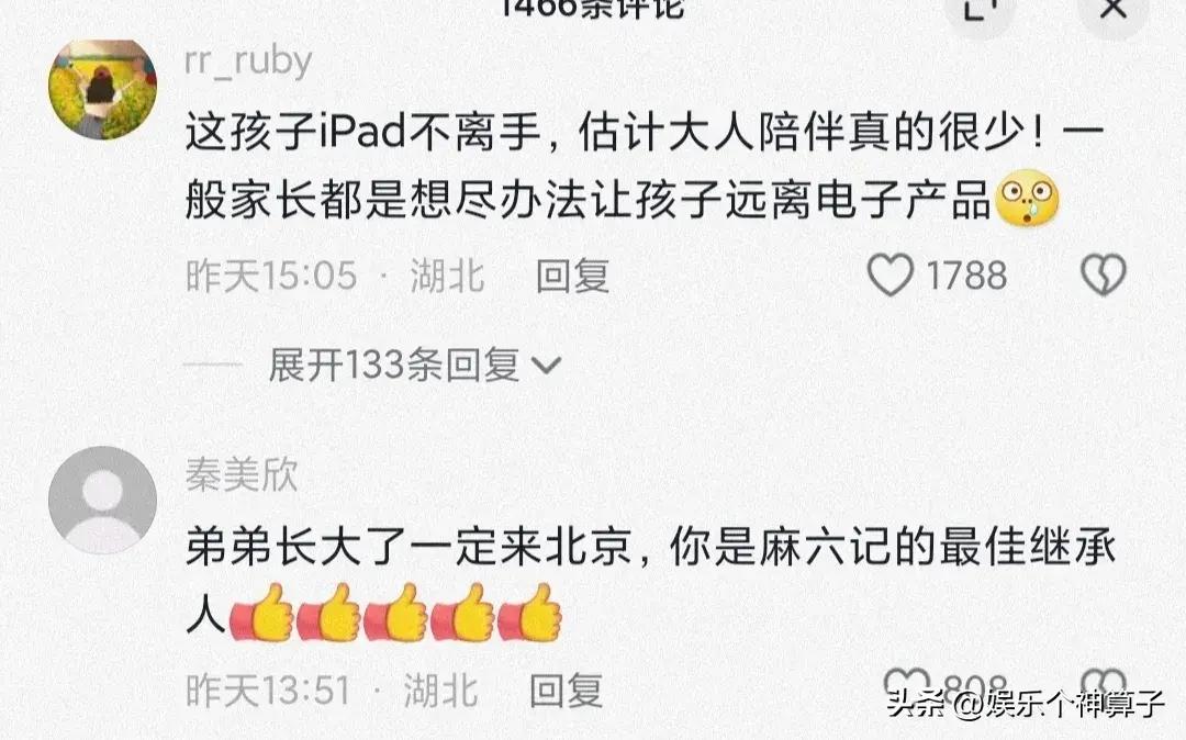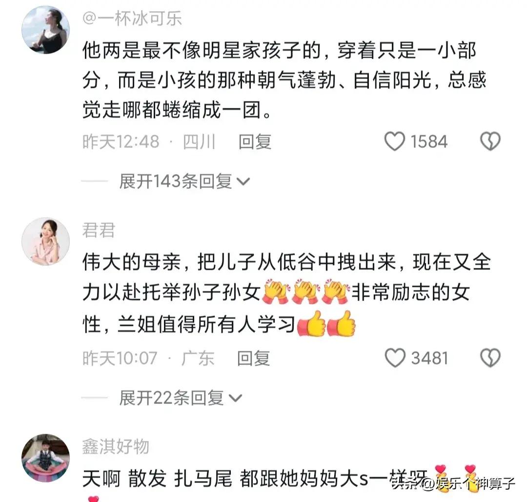 也有網友認爲,小玥兒和霖霖一點不像明星家的孩子,衣着樸素,一件上衣要穿好幾天,一點也不活潑開朗,走到哪裏都蜷縮成一團,感覺特別沒有感全感,印象中,很多星二代都是多才多藝,能歌善舞,然而,汪小菲的兒女,手裏總是捧個ipad。