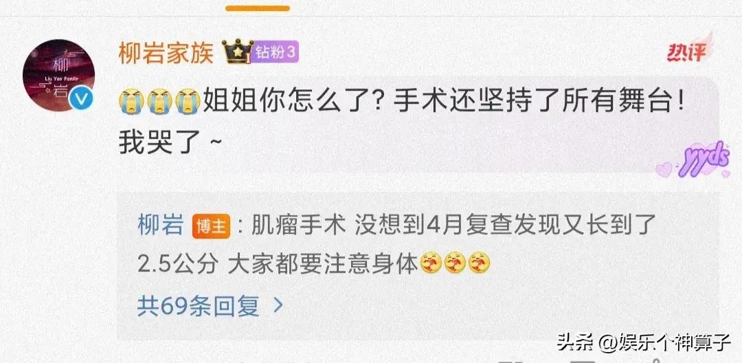 柳巖透露做完肌瘤手術,複查長到2.5公分,網友吐槽小毛病太矯情