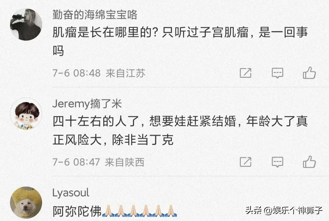 肌瘤不是沒感覺嗎?明明就是小手術,完全可以用藥物控制,小毛病也要買個熱搜,真夠矯情的,這是告訴大家生病了也要工作,也要繼續乘風破浪?不是應該好好休息?