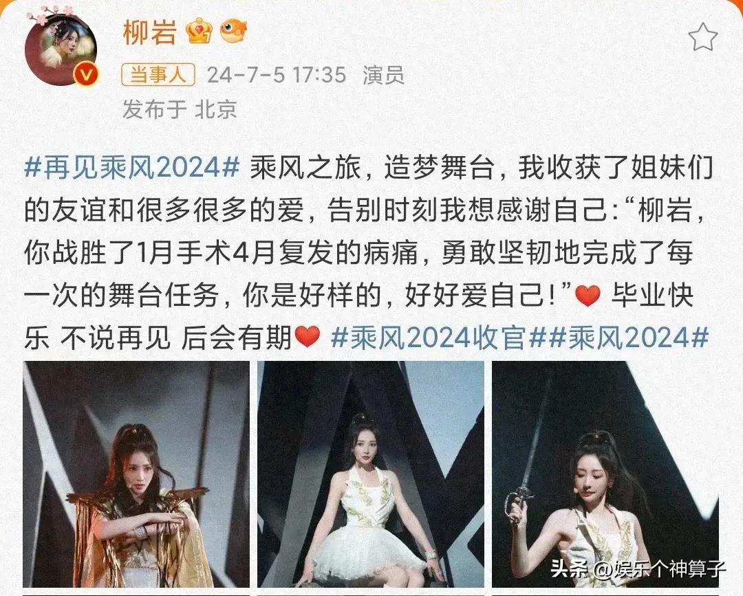 7月5日,深夜,柳巖上了熱搜,沒想到,這一次,不是因爲在浪姐舞臺上的精彩表現,而是在社交平臺發文,告別《乘風2024》,感慨頗多,並透露一件令人心疼的事兒。