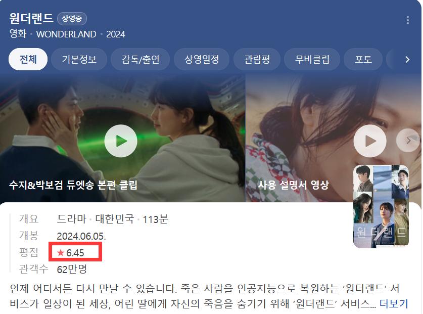 韓國著名網站NAVER上的評分僅有6.4,國內豆瓣的評分也只將將及格的6.5,評分人數僅有3641人。