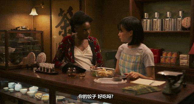 女主角艾雅走到一箇中國女孩身邊問,你那餃子好喫嗎?