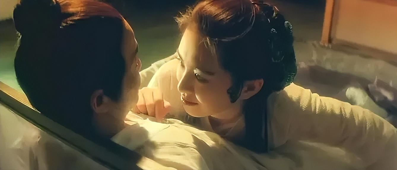她害怕寧採臣被發現,用嘴巴親吻他,把他推到水下的背影,好美,好動人。