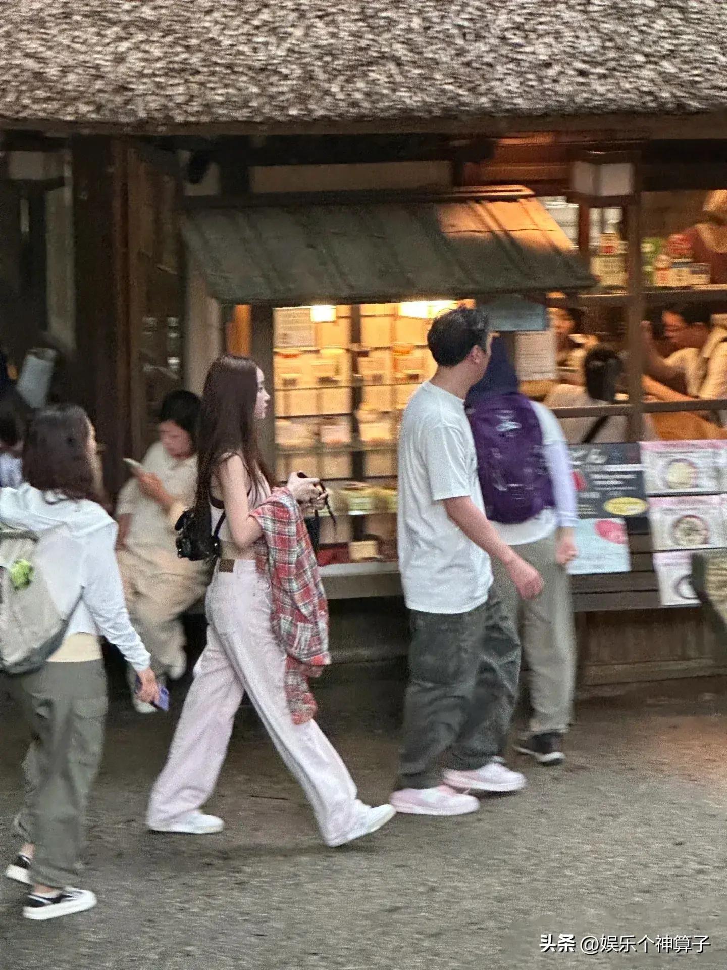 懶懶打扮的十分清涼,砍袖小背心搭配白色的褲子,一頭披肩長髮,非常清新可人,雖然不是近照,看起來都特別漂亮,這麼一看並不比思聰矮多少,兩人看起來挺般配,乖巧的站在一旁,主打一個陪伴。
