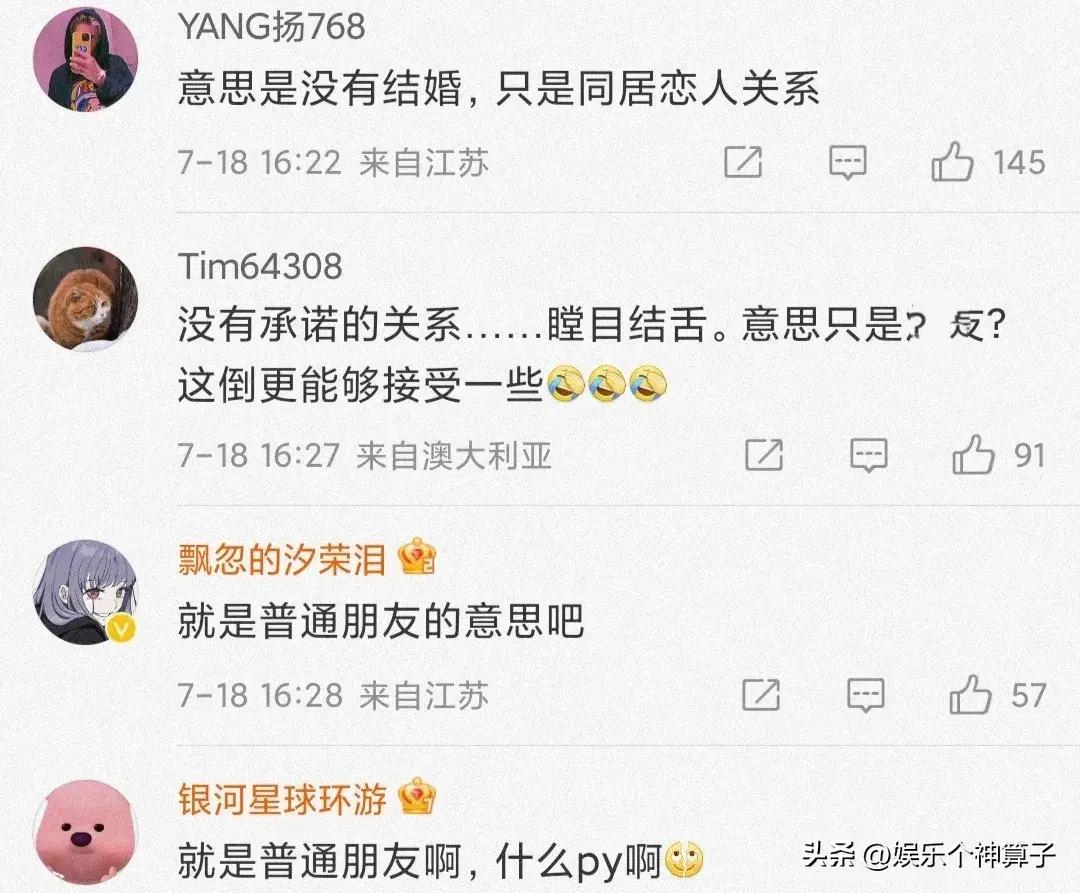 也有網友認爲,意思就是沒有結婚,只是同居戀人的關係,60多歲的老人了,可能表達比較含蓄一些。