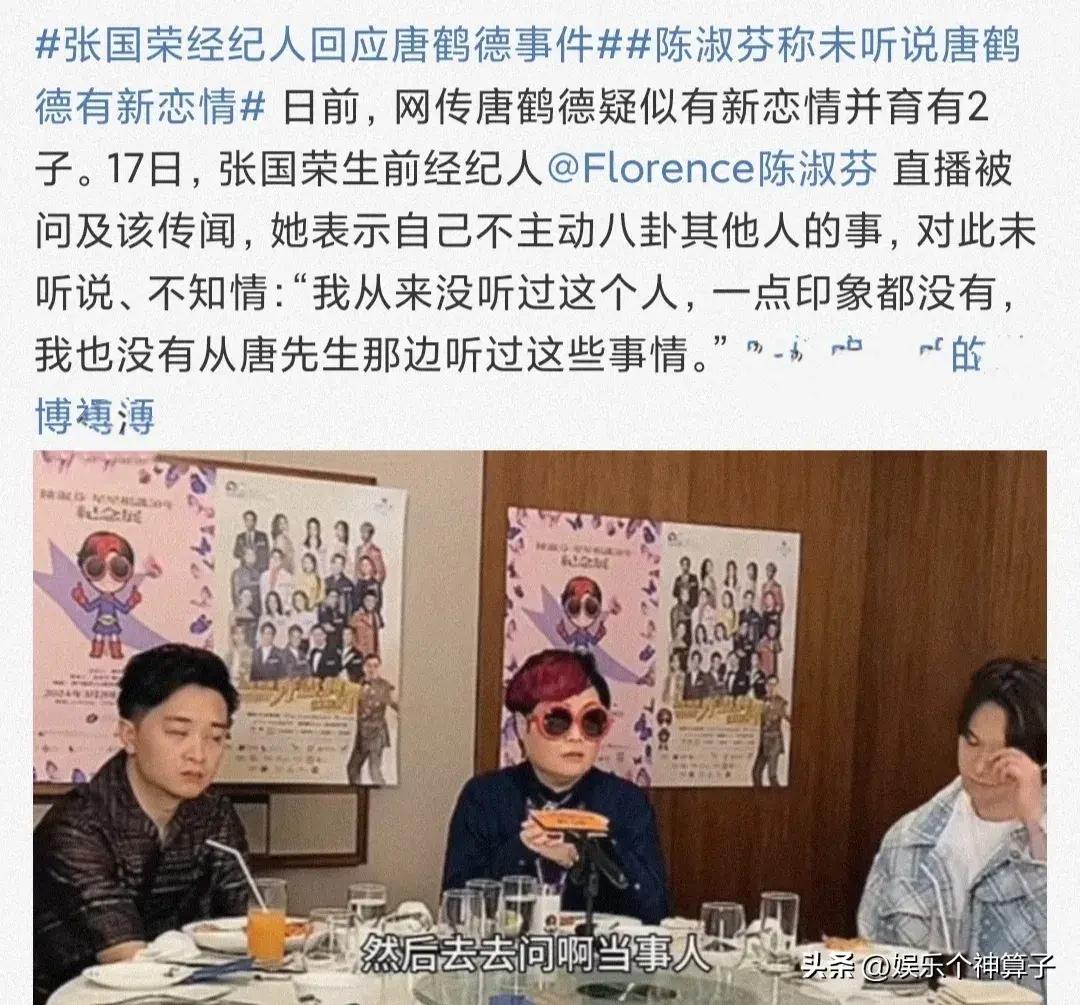 稍早一些,據媒體報道,哥哥生前經紀人直播時也回應網傳唐鶴德新戀情這件事兒,自稱沒關注,不清楚,更不認識這名男子。