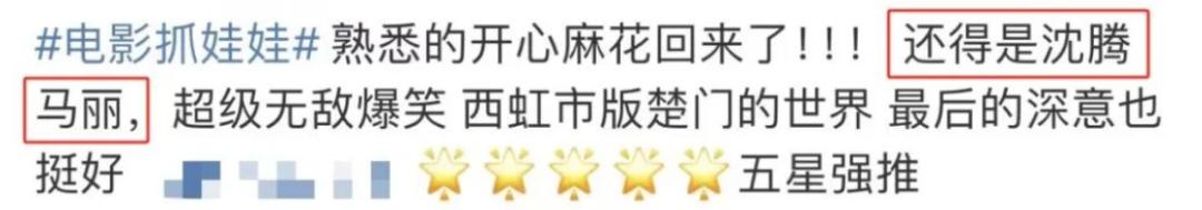 《抓娃娃》中,沈馬再次出演夫妻,不管是正片還是花絮,都默契十足,有他倆的地方就有笑聲,讓人夢迴《夏洛特煩惱》。