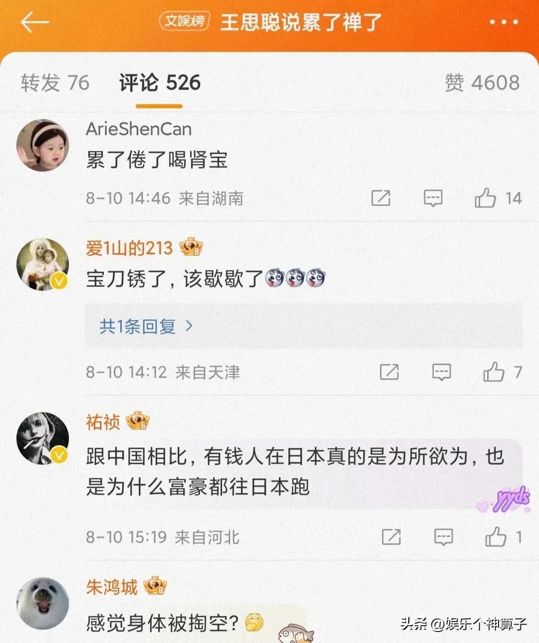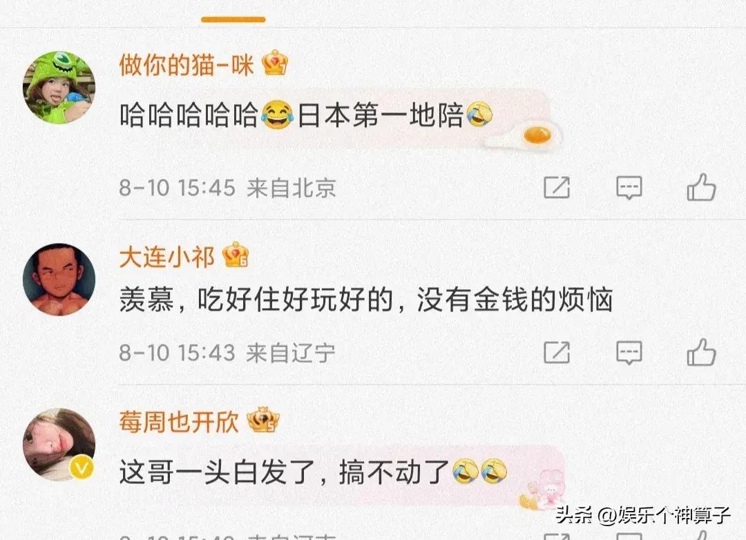 還有一些網友開始調侃:感覺身體被掏空了,畢竟快40歲的人了,明顯虛了,平時應該多喫點補品,是不是已經給了奶粉錢,纔會身心疲憊,日本第一地陪,果然名不虛傳,這地方不錯,好好靜養一段時間,應該問題不大。