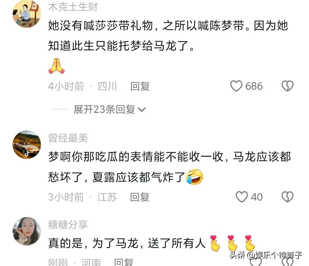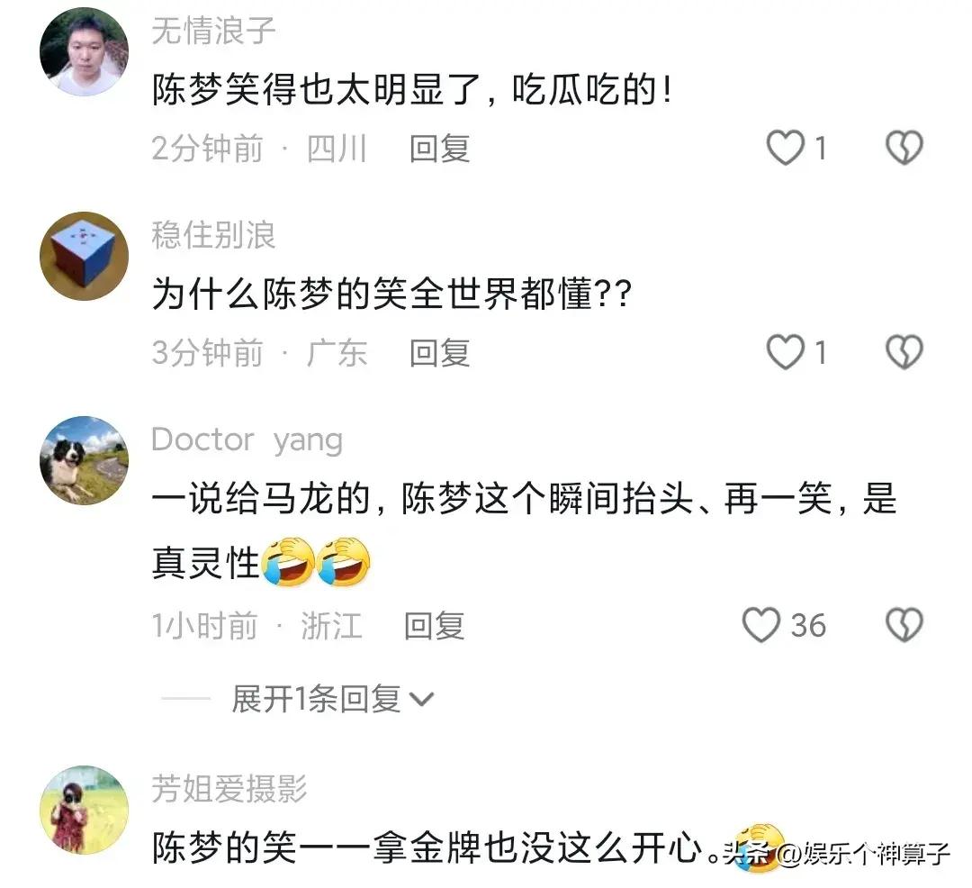 陳夢顯得太明顯了,能不能收一下,一副喫瓜的表情,聽到送給馬龍立刻抬頭,真靈性,這笑容簡直比拿到金牌還燦爛。