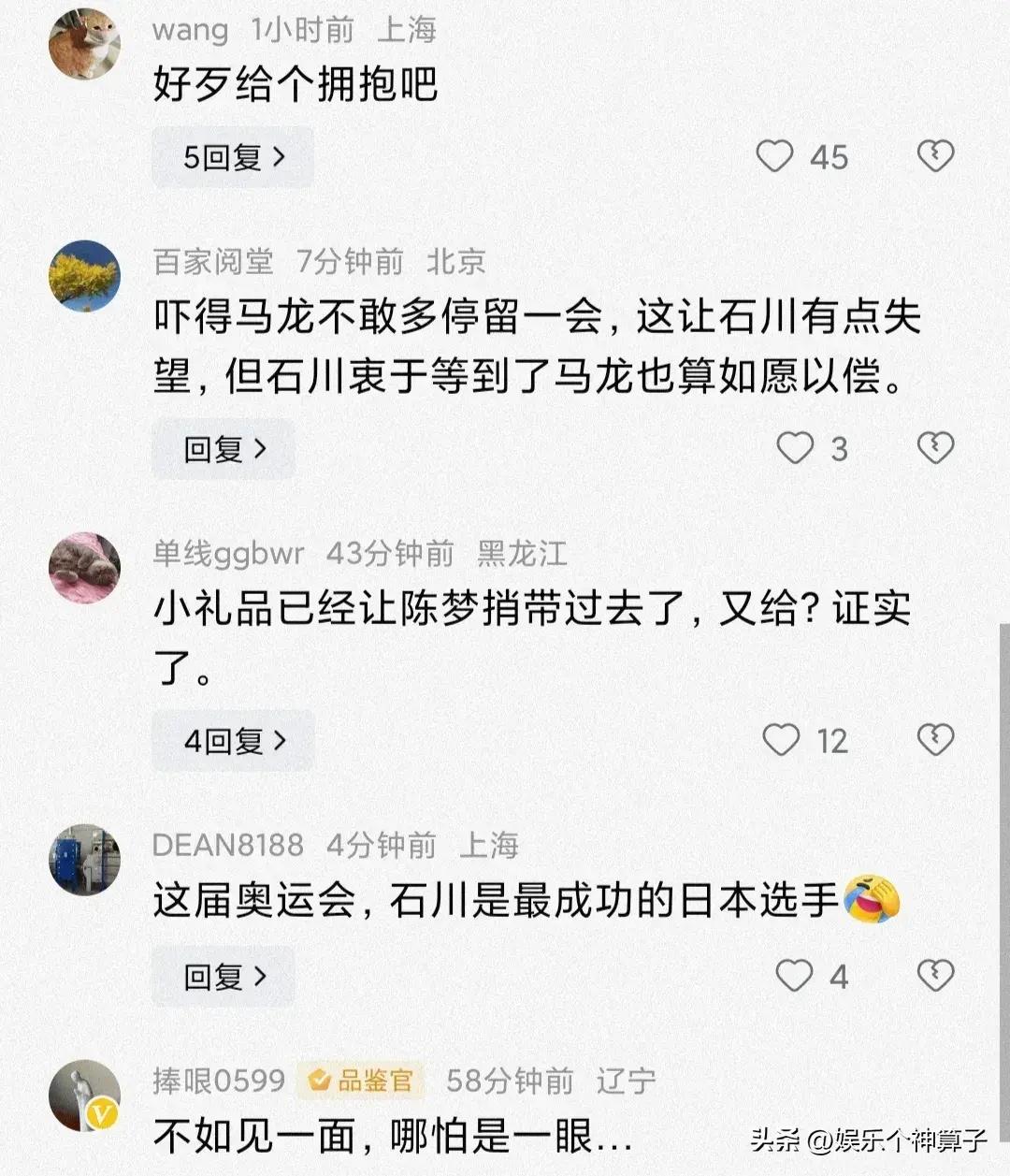 也有網友認爲馬龍面對石川的熱情有些不太禮貌,起碼也要上前給一個擁抱,不能讓人家太失望。