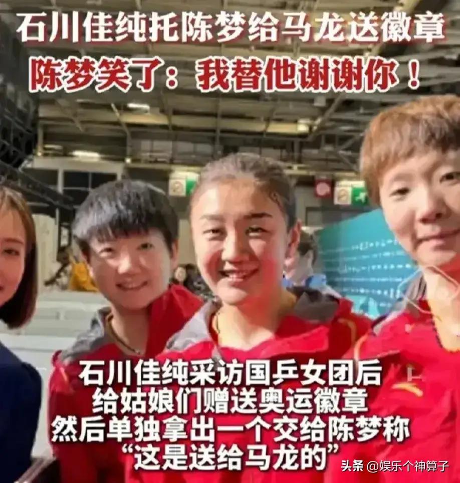 估計石川佳純也沒想到能在拜訪區見到馬龍,否則也不會託陳夢幫忙送奧運勳章,起初來到賽場就開始四處搜尋,尋找龍隊的身影,能有短暫的交流,也算圓夢了。