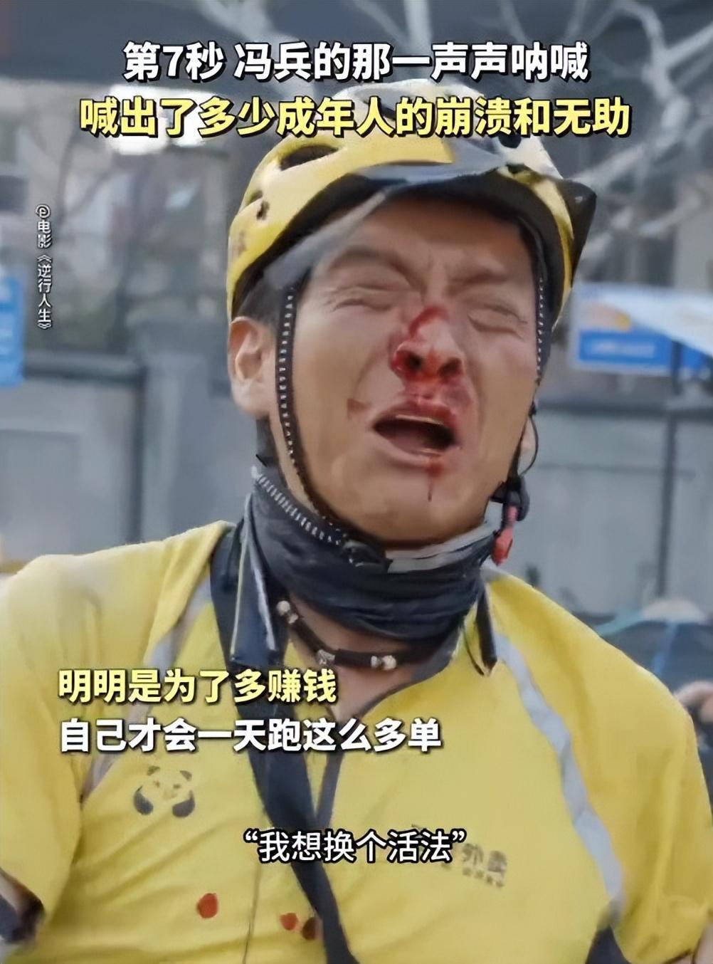 他在大廠被裁員時的憤怒,和妻子坦誠後的脆弱,經歷外賣員各種狀況時的無奈,嘶吼,絕望。