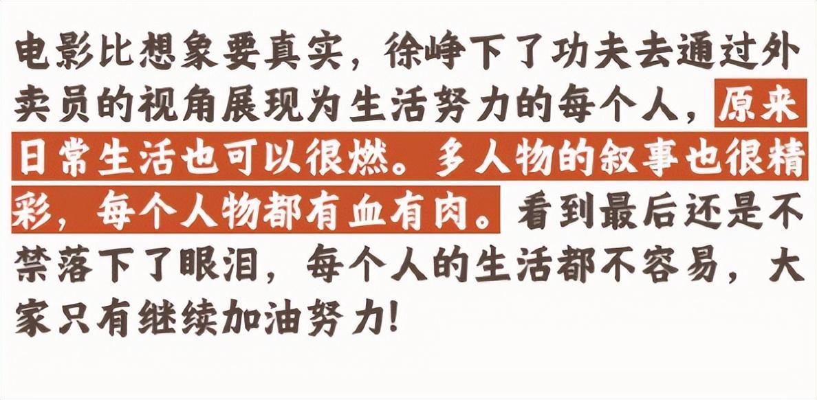 雖然是以“外賣員”爲故事主角,但影片所講的遠不止於外賣員怎麼了,而每一個普通的我們正在經歷什麼,想在講“這個時代怎麼了?”“我們又怎麼了?”