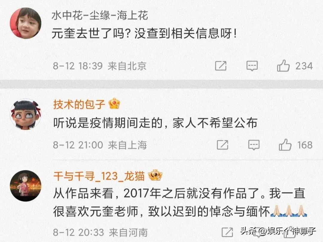 得知元奎去世的消息,一些網友也非常難過,紛紛留言:很難再有這樣的動作導演了,感謝您帶給我們的美好回憶,太低調了,一路走好。