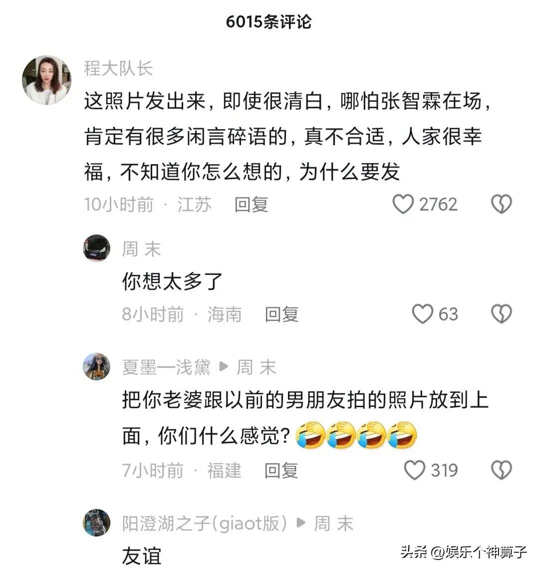 大B哥真的不應該發出來,哪怕是好友,就算張智霖在場,也不合適,很容易讓人誤解,夫妻二人很幸福,真不知道咋想的。