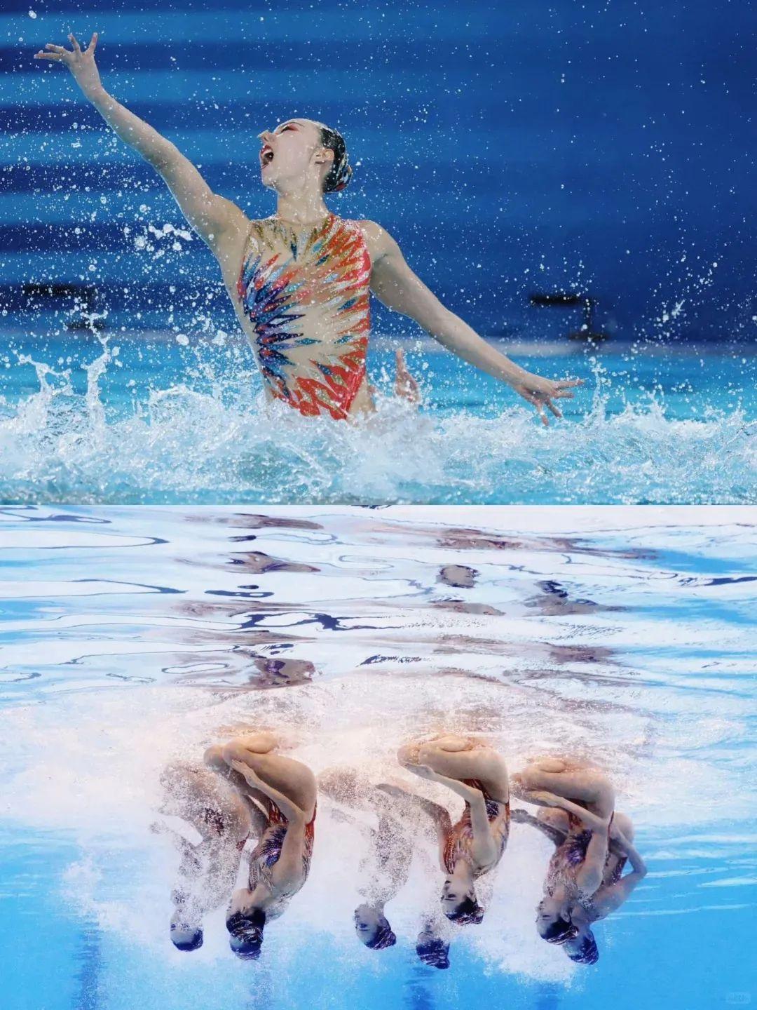 她與馮雨、常昊、王賜月、張雅怡、王柳懿、王芊懿、向玢璇七名隊友完美演繹水中芭蕾、東方之美,征服全體觀衆。