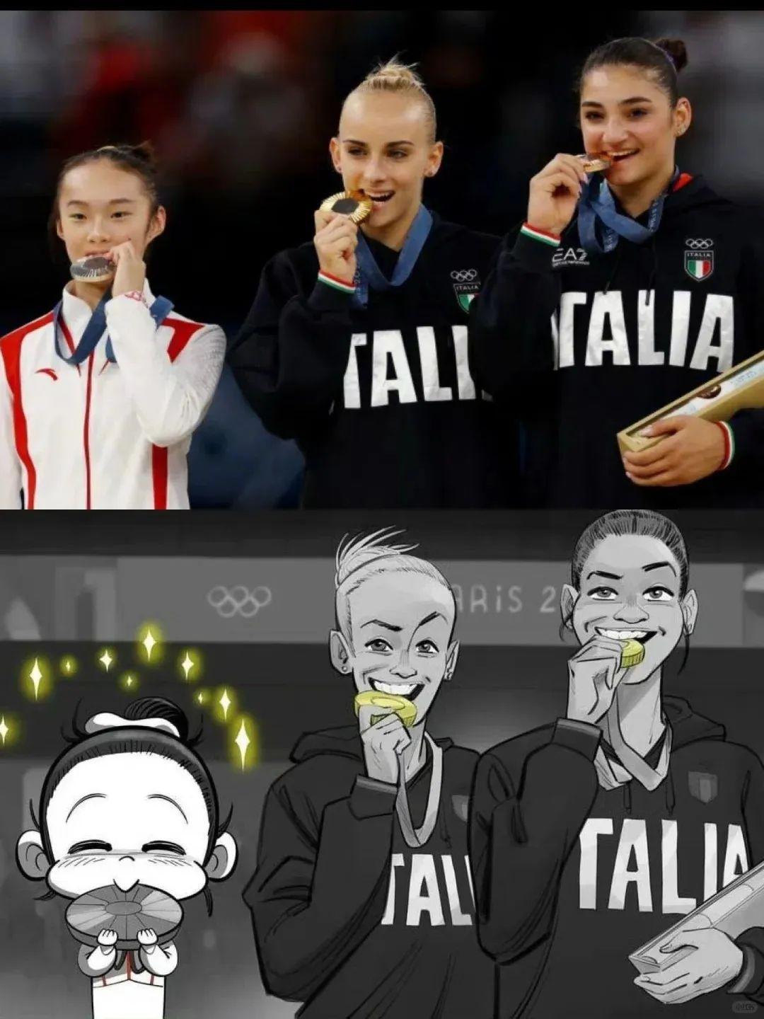 再比如咬銀牌火遍外網的體操選手周雅琴,得獎後可愛的反應引來一大批外國網友二創。