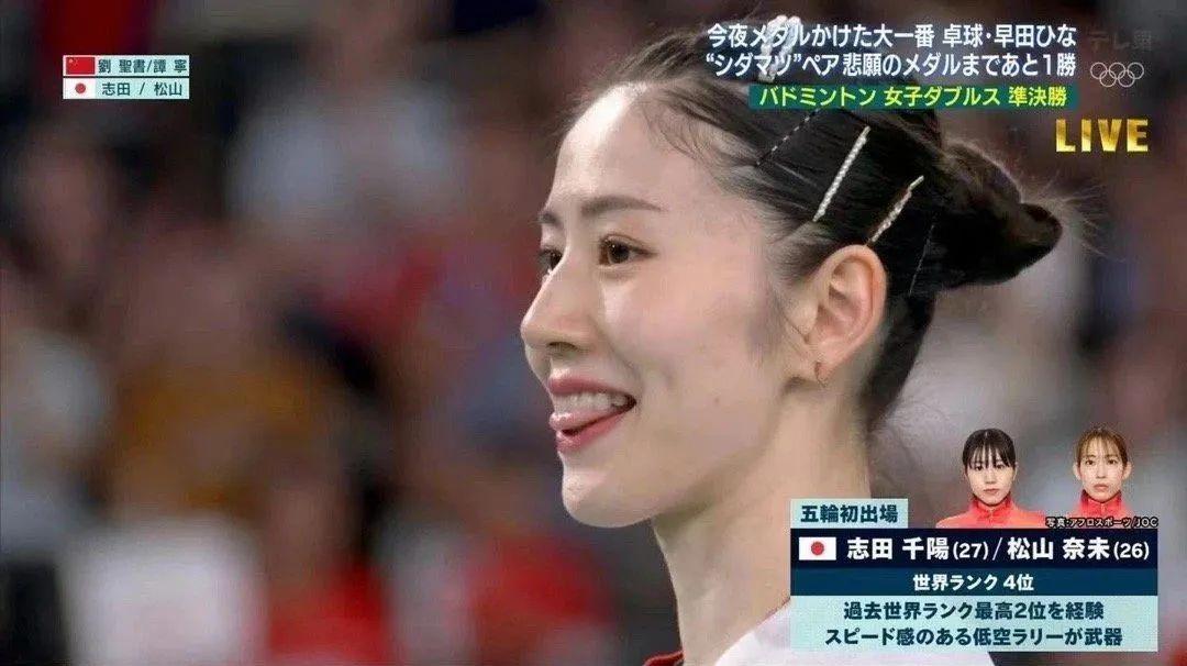 福原愛的老鄉,97年生的志田千陽,與松山奈未組成的山羊組合,在羽毛球女子雙打半決賽中,以0-2不敵中國隊。